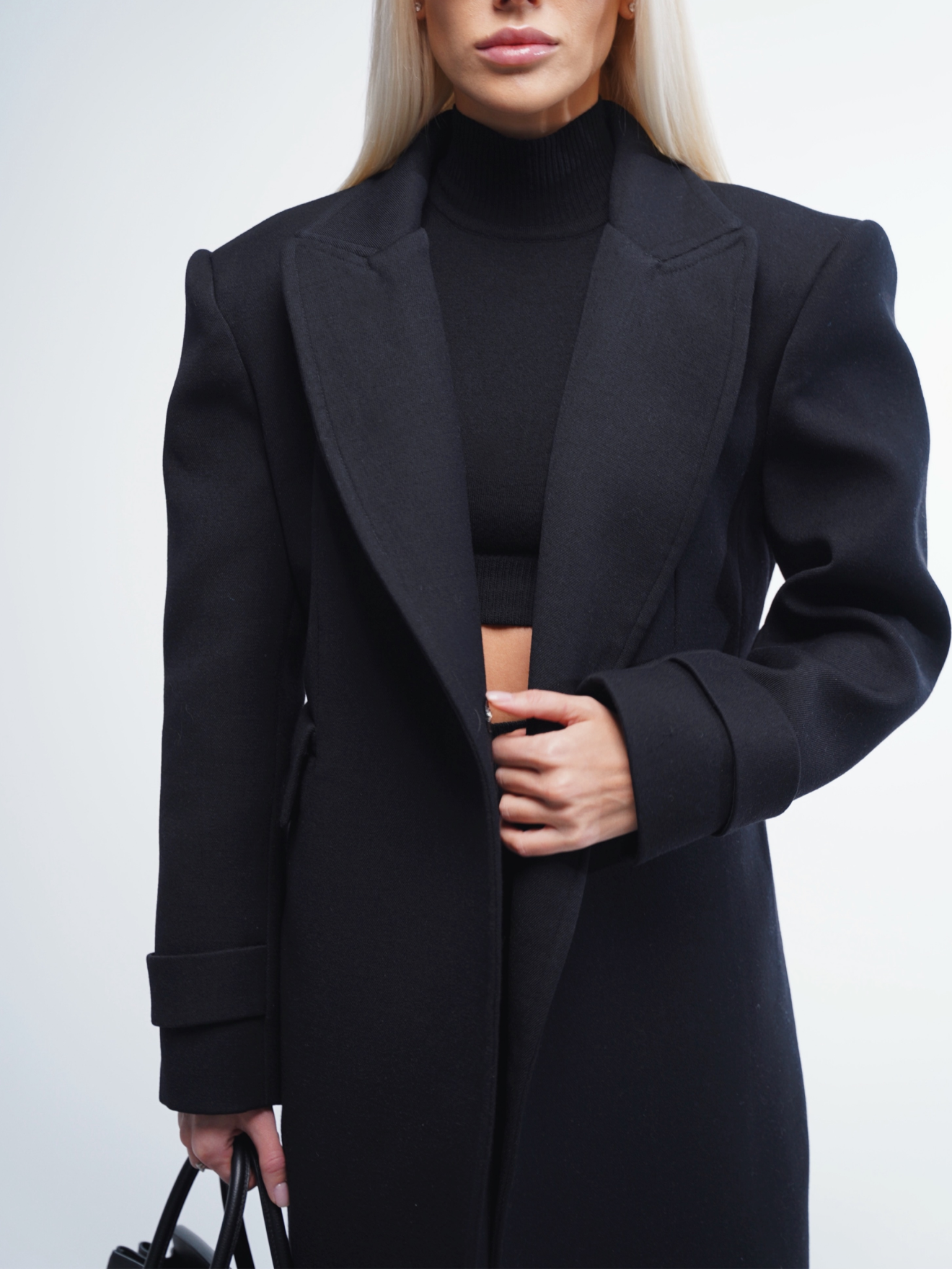 Виконане з натуральної шерсті мериноса, пальто забезпечує тепло, м’якість і довговічність, зберігаючи бездоганний вигляд у будь-яку пору року. Віскозна підкладка додає комфорту та легкості в носінні, а продуманий крій підкреслює силует, роблячи кожен образ особливим.